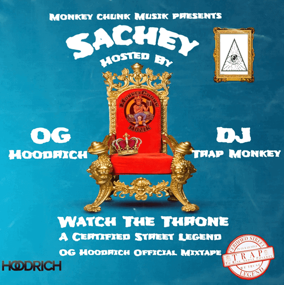 Co-founder of Monkey Chunk Muzik, Sachey is teaming up with OG Hoodrich to present ‘Watch The Throne: A Certified Street Legend Og Hoodrich Official Mixtape‘ just in time for the label owner’s birthday. Street rappers and trap artists such as DJ Drama, OG Hoodrich, WALKNTALKNCHECK, Hunnitband Flex, Cokeboy Chunk, and DJ Trap Monkey are coming together for a limited edition mixtape.The project has also garnered the talent of producers which include; Bandplay, Drumma Boy, Vgs Midnight, Mula Mar, Krunk Citi, Superstar O, Th3 Coalition (aka Gutter with the Butter), and Mouse on The Track.