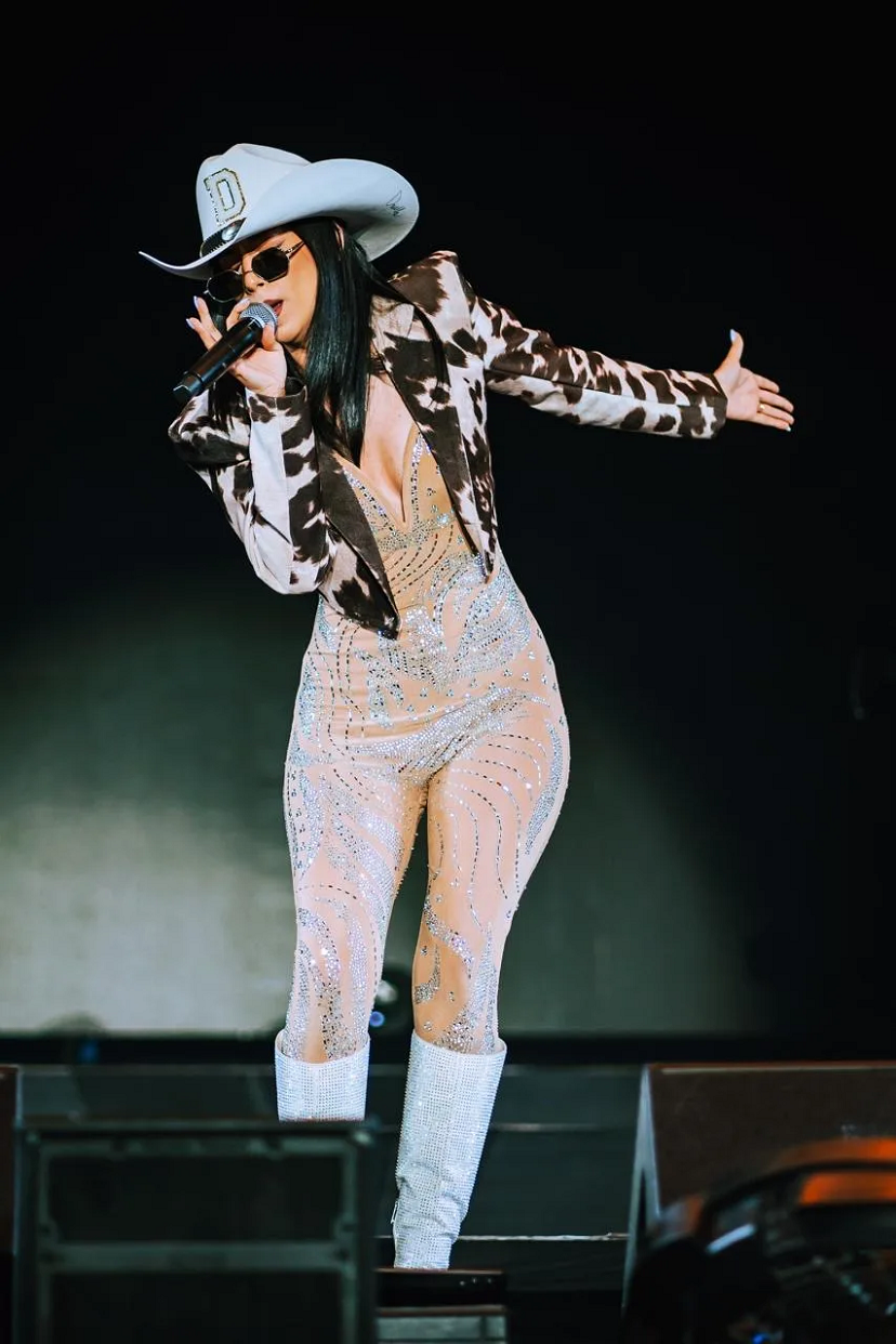 Beyond music, Dovella is also making her mark as an entrepreneur with her own line of cowboy hats, blending her love for fashion with her artistic identity. This connection to style and self-expression further reflects the message behind “Hecha y Derecha” — owning who you are, inside and out.